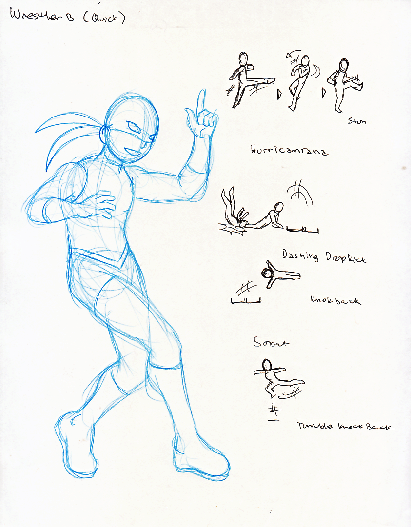 Grappler Maki is a 2.5D H beatemup currently in development. The court of Gray has kidnapped Maki's rag team partner and it's up to her to get her partner back so they can defend their tag team titles.